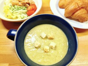 水菜のポタージュは2回分まとめて作ってくれたので、今日は冷凍しておいたものを温めました。