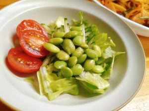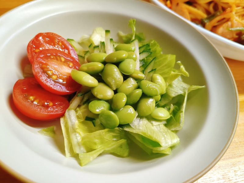 サラダは、レタス・きゅうり・ミニトマト・枝豆。