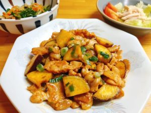 今日は『さつまいもと豚肉のコチュジャン炒め』を作ってみました。