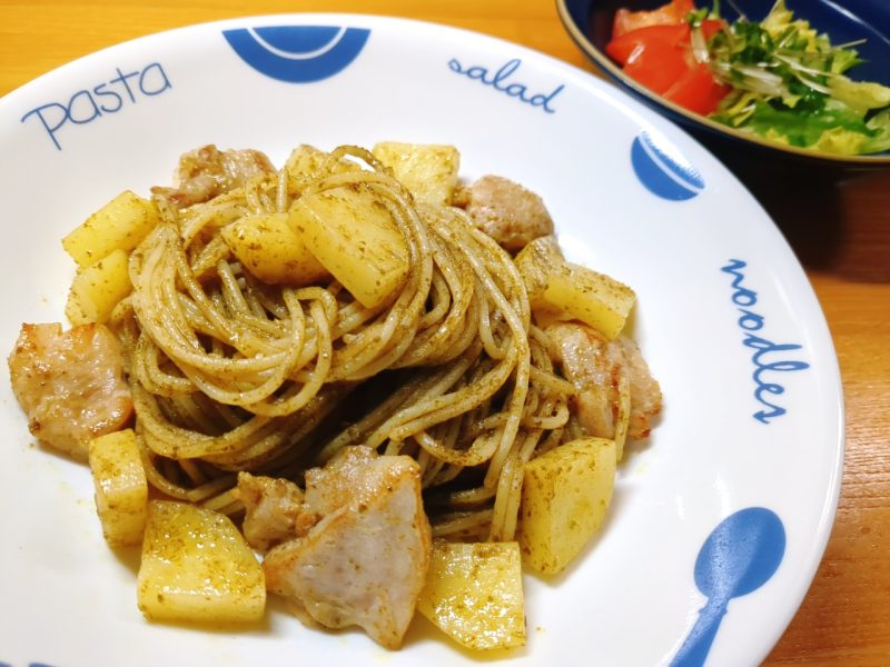 鶏肉とじゃがいものジェノベーゼパスタ、