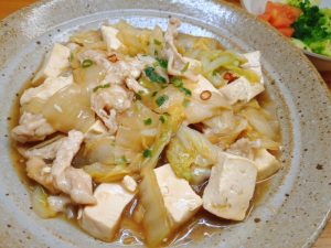 今日の晩ごはんは、『蒸し肉豆腐』です。