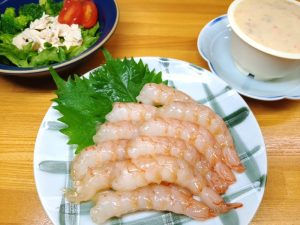 今日の晩ごはんは、赤えびのお刺し身です。