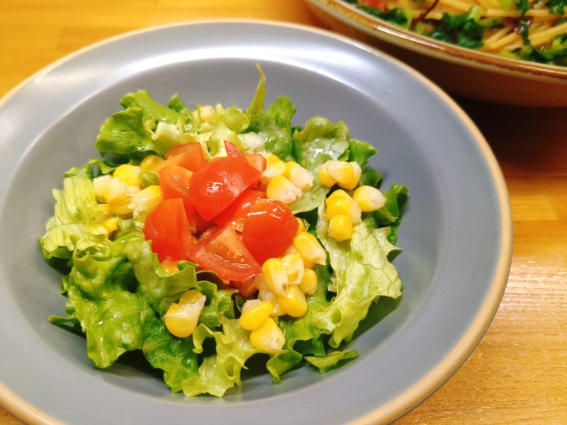 サラダは、サニーレタス・ミニトマト・コーン。