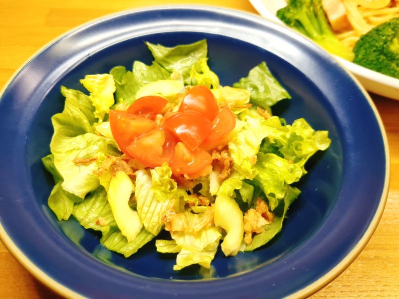サラダは、レタス・ミニトマト・セロリ・フライドオニオン。