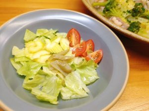 サラダは、レタス・ミニトマト・セロリ・ピクルス。