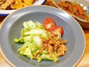 サラダは、レタス・ミニトマト・セロリ・フライドオニオン。