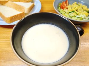 お隣さんから野菜をいただいて、ヤーコンがあったので夫がポタージュを作ってくれました。