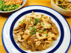 今日は『豚肉れんこんの炒め煮』を作りました。