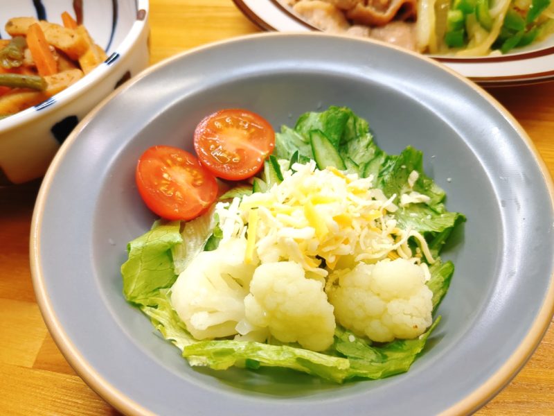 サラダは、レタス・きゅうり・ミニトマト・カリフラワー・ミックスチーズ。