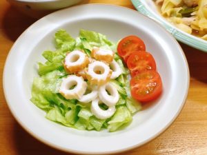 サラダは、レタス・きゅうり・ミニトマト・ちくわ。