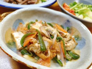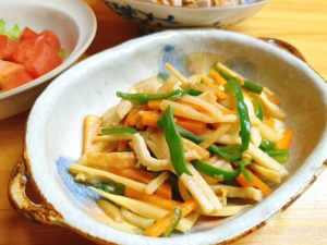 細切りのたけのこが残っていたので、ちくわ・人参・ピーマンと一緒に炒めました。