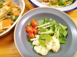 味付けは、鶏がらスープの素を少々、醤油とオイスターソースは目分量、最後にコショウをササッ振りかけて出来上がり。