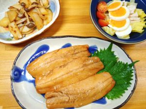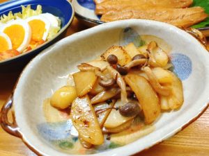 副菜は『じゃがいもとしめじのバター醤油炒め』です。
