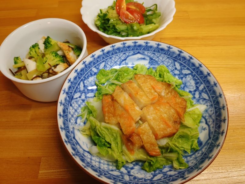 副菜は『キャベツとツナのごまマヨ和え』です。