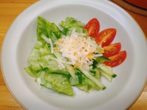 サラダは、レタス・きゅうり・ミニトマト・ミックスチーズ。