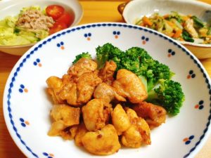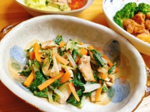副菜は明日の分もあるので、食べる前に加熱しておきます。