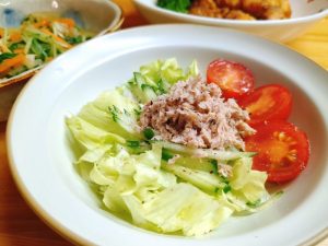 サラダは、レタス・きゅうり・ミニトマト・ツナ。