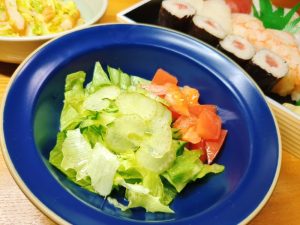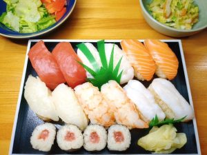 今日の晩ごはんは、スーパーで買ってきたお寿司です。