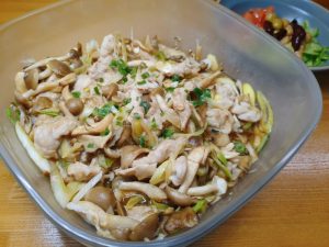 今日の晩ごはんは『きのこと豚肉の中華レンジ蒸し』です。