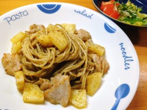 今日のパスタは『鶏肉とじゃがいものジェノベーゼ』です。