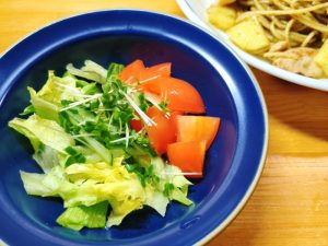 サラダは、レタス・きゅうり・トマト・ブロッコリースプラウト。