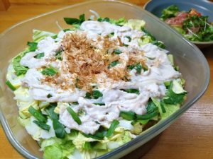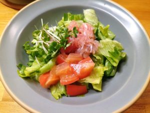 生ハム・ブロッコリースプラウトで、いつもと少し違うサラダになりました
