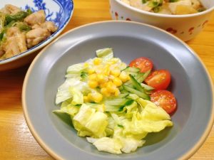サラダは、レタス・きゅうり・ミニトマト・コーン。