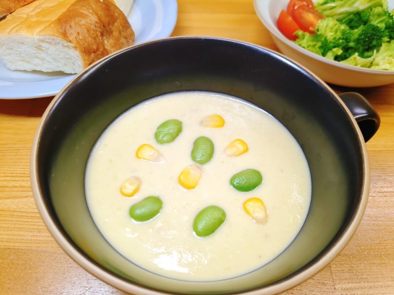 今日の晩ごはんは『枝豆とコーンのポタージュ』です。