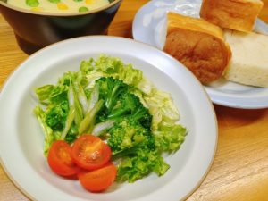 サラダは、サニーレタス・ミニトマト・ブロッコリー・セロリ。