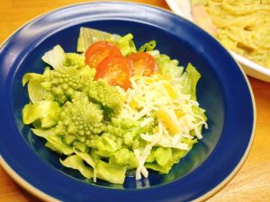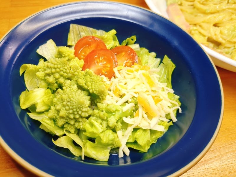 サラダは、レタス・ミニトマト・ロマネスコ・ミックスチーズ。