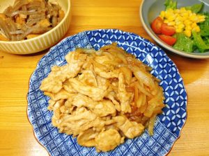 豚肉と玉ねぎの豚丼のたれ炒め、