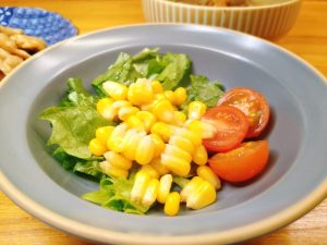 主菜も副菜も茶色で地味だったので、サラダはカラフルにしました ![]()