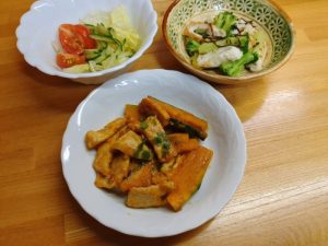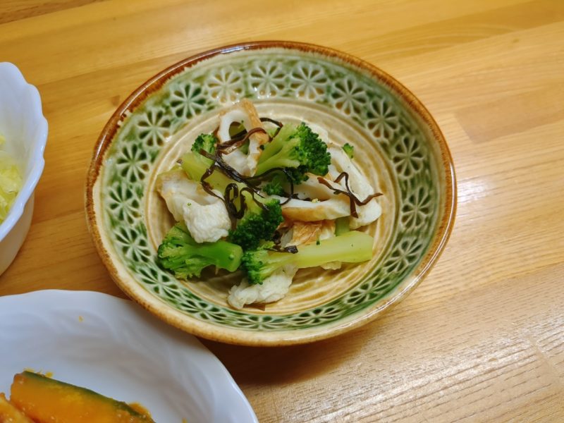 副菜は『ちくわとブロッコリーの塩昆布和え』。