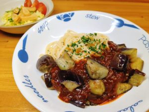 今日のパスタは『茄子ボロネーゼパスタ』です。