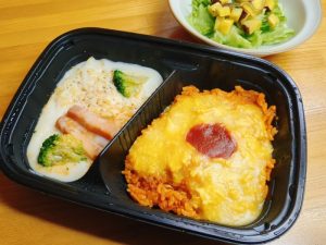 味は、オムライスは塩分が強めなので、グラタンと一緒に食べて丁度いい感じです。