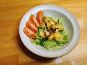 サラダは、レタス・きゅうり・ミニトマト・さつまいも。
