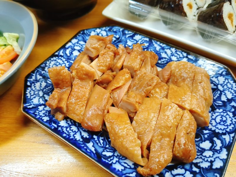 副菜として、冷凍の「あぶり焼きチキン照り焼き」を温めて盛り付けましたが、ほぼ残してしまいました。