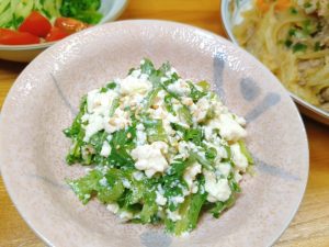 副菜は『春菊と豆腐の白だし和え』。