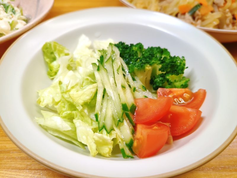 サラダは、レタス・きゅうり・ミニトマト・ブロッコリー。