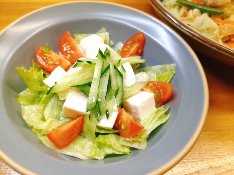 サラダは、レタス・きゅうり・ミニトマト・絹豆腐。