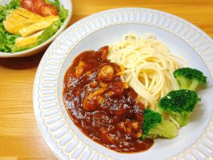 今日のパスタは『あさりボロネーゼパスタ』です。
