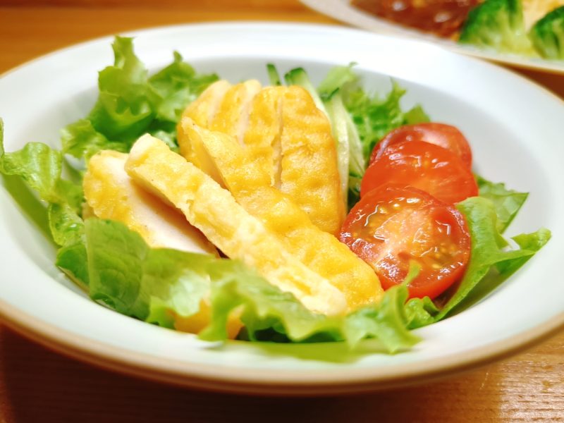 サラダは、リーフレタス・きゅうり・ミニトマト・チキンナゲット。