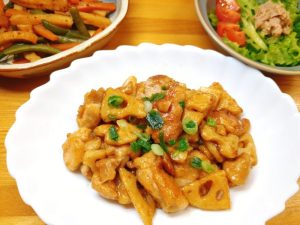 鶏れんこんの甘酢炒め、