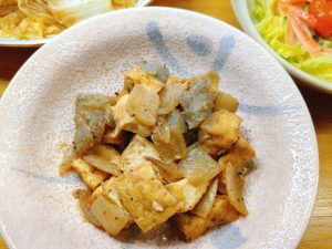 副菜は『厚揚げとこんにゃくの味噌炒め』。