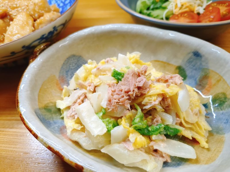 副菜は『白菜とツナのみそマヨあえ』。