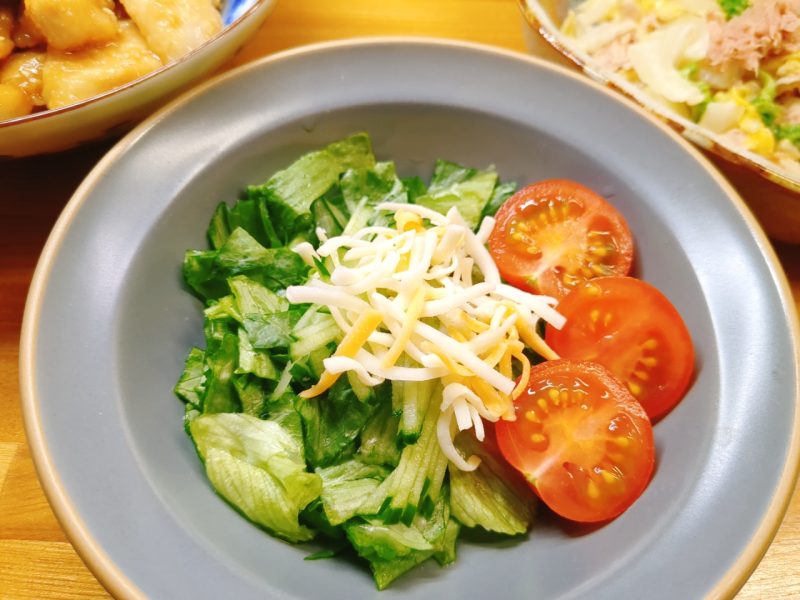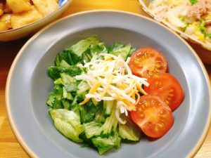 サラダは、レタス・きゅうり・ミニトマト・ミックスチーズ。