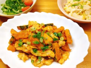 豚肉かぼちゃのスタミナだれ、
