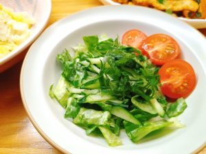 サラダは、レタス・きゅうり・ミニトマト・大葉の千切り。