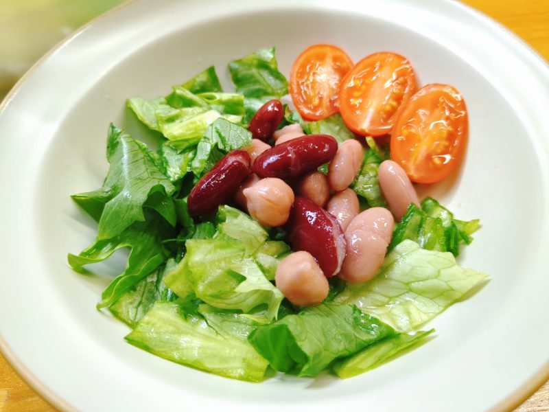 サラダは、レタス・ミックスビーンズ・ミニトマト。