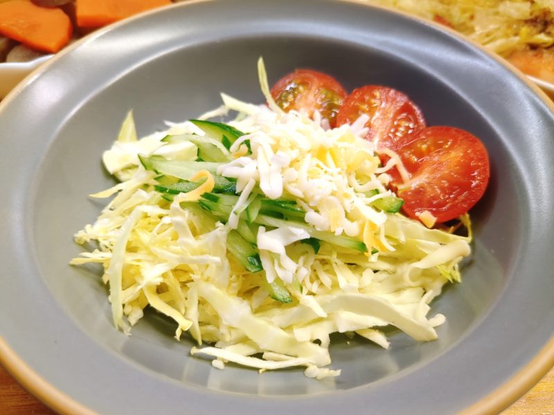 サラダは、キャベツ・きゅうり・ミニトマト・ミックスチーズ。